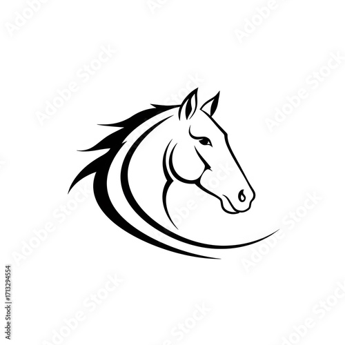 horse, black, white, equestrian, animal, mammal, head, profile, mane, flowing, graceful, strong, detailed, minimalist, logotype, design, illustration, vector, artwork, monochrome, stylised, outline, professional, branding, veterinary, equine, wildlife, nature, creative, modern, graphic, icon, silhouette, artistic, line art, black-and-white, minimal, sport, riding, racing, sophisticated, dynamic