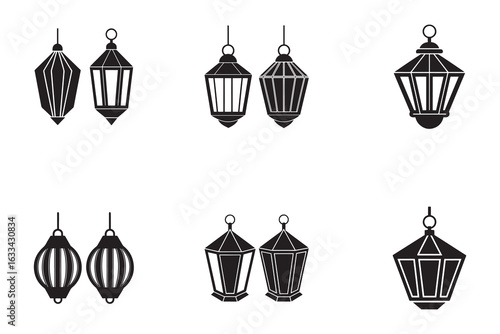 Elegant Black and White Lantern Icons for Ramadan and Islamic Celebrations Vector Illustration
