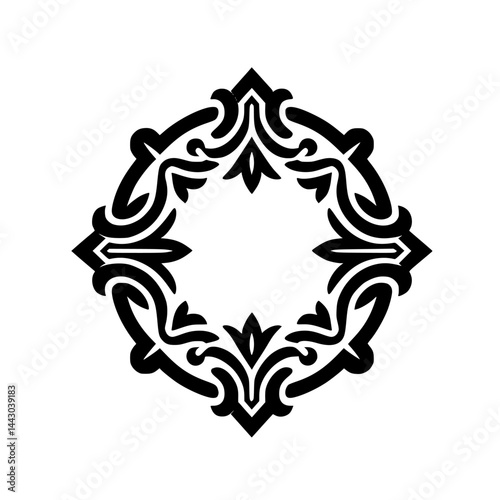 Elegant Black and White Ornate Diamond Design Element with Classic Floral Symmetry