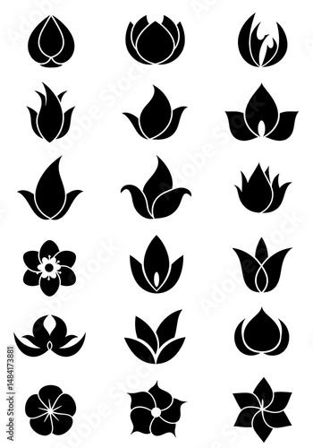 flower, blossom, bloom, floral, flower petals, bud, silhouette, design, icon, symbol, graphic, element, vector, art, illustration, black, white, simple, minimalist, abstract