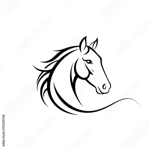 Elegant Black Horse Head Line Art Illustration on White Background for Logo Design