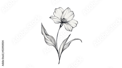 Elegant black line drawing of a delicate flower on white background