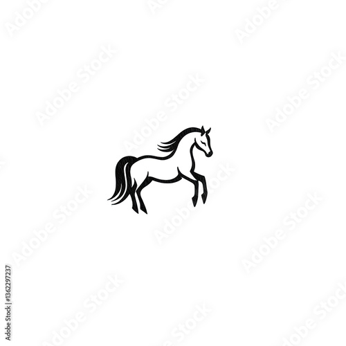 Elegant Black Stallion in Motion Artistic Line Drawing