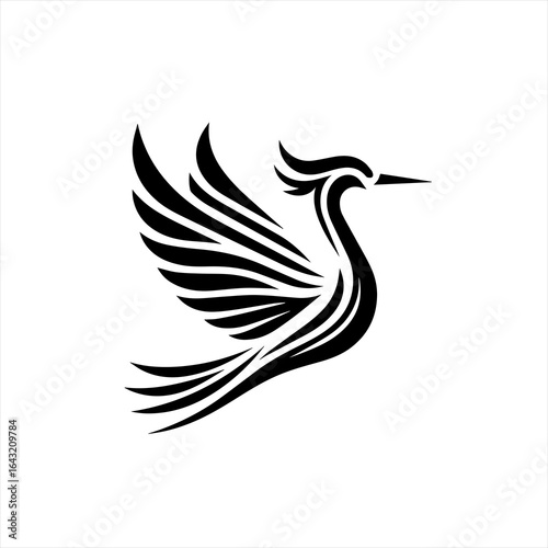 bird, silhouette, black, white, flying, flight, wing, elegant, stylised, graphic, design, icon, logotype, abstract, minimalist, clean, symbol, freedom, graceful, art, vector, ornamental, modern, isolated, animal, illustration, nature, hummingbird, wing, stork, feather, cartoon, eagle, wildlife, tattoo, heron, beak, wild, fly, outline