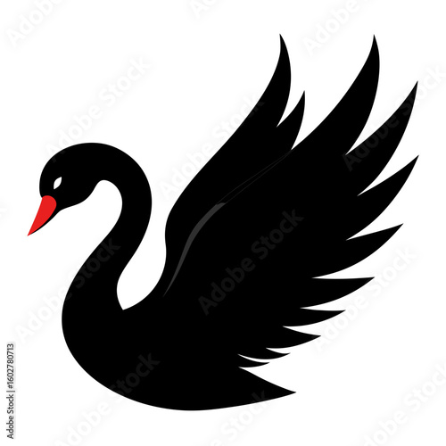 black, cygnet, bird, animal, wildlife, water bird, graceful, elegant, icon, logotype, illustration, graphic, vector, art, design, white, background, minimalist, stylised, silhouette, red, beak, wing, widener, swimming, water, avian, nature, symbol, creature