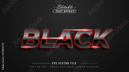 Elegant Black text design with red neon glow on dark background.