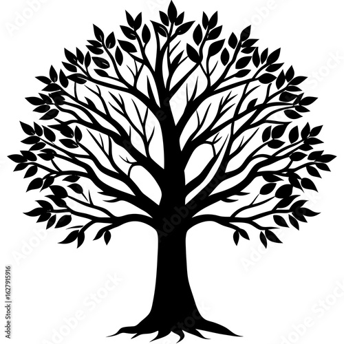 tree, silhouette, black, white, leaf, branch, nature, vector, illustration, design, isolated, symbol, icon, graphic, element, art, drawing, plant, organic, growth, life, seasonal, spring, summer, autumn, winter, deciduous, foliage, wood, trunk, root, environment, ecology, natural, shape, outline, clip art, artwork, botanical, leaf, tree branch, monochrome, simple, minimalist