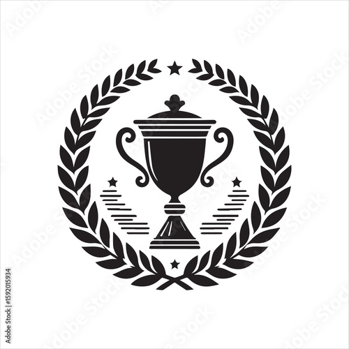 trophy, award, achievement, success, winner, champion, victory, competition, prize, emblem, symbol, honour, recognition, celebration, winning, triumph, laurel, chaplet, leaf, circle, star, star, design, graphic, illustration, black, elegant, classic, vintage, retro, style, shape, icon, element, isolated, badge, crest, sport, game, contest, tournament, excellence, leadership, motivation, inspiration, goal, aspiration, dedication, perseverance