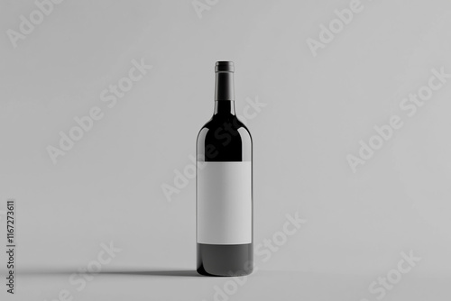Elegant black wine bottle with a blank label showcased in minimalistic design setting