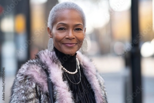 woman, middle, aged, black, city, street, vintage, fur, coat, pearl, leather, pursed, confidence, elegance, refined, style, timeless, fashion, urban, daytime, winter, accessory, outerwear, natural, coiffure, smile, poised, sophistication, mature, professional, chic, trendy, glamour, lifestyle, fashionable, classic, upscale, metropolitan, cold, weather, modern, portrait, self, assured, elegant, attire