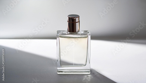 Elegant Blank Perfume Bottle Mockup with White Background Isolated and Natural Daylight