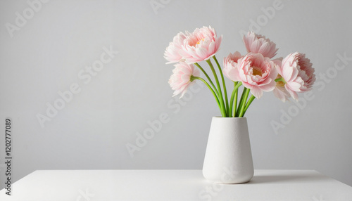 Elegant blossoms in minimalist vase on grey backdrop, tranquility