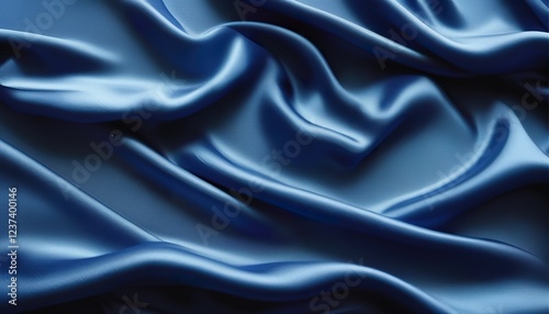 Elegant Blue Satin Fabric Drapes, Soft Texture, Luxurious Waves