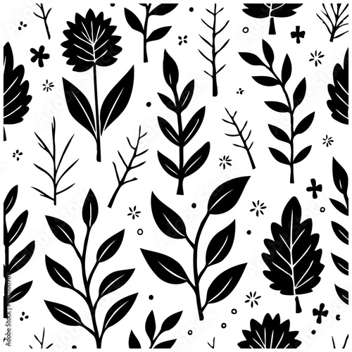 botanical, pattern, floral, vector, seamless, design, leaf, plant, flower, nature, tree branch, illustration, spring, decorative, texture, ornament, background, decor, graphic, vintage, wallpaper, textile, print, summer, art, abstract, black, flourish, drawing, retro, decoration, isolated, element, silhouette, blossom, natural, style, beauty, simple, foliage, organic, artistic