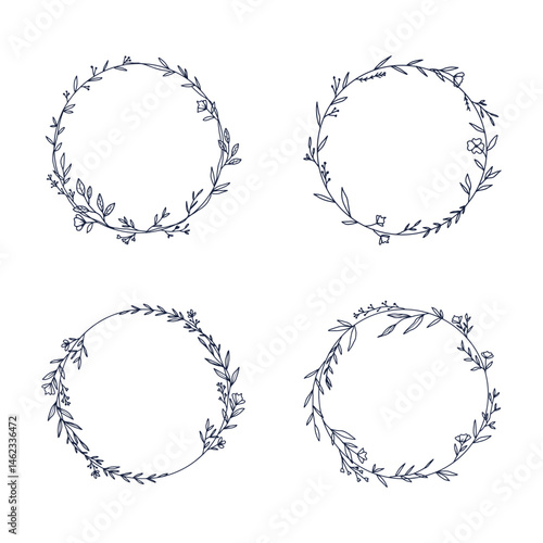 Elegant Botanical Wreath Collection Hand Drawn Line Art Set Vector