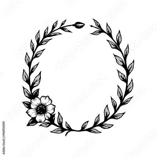 chaplet, floral, botanical, frame, design, vignetting, invitation, nature, flower, ornament, border, leafy, drawing, blooming, sprig, graphic, element, elegant, vintage, artistic, decorative, vector, isolated, blossom, simplicity, foliage, monochrome, flourish, template, circular, springtime, minimalist, hand-made, illustration, hand-drawn, artwork, romantic, organic