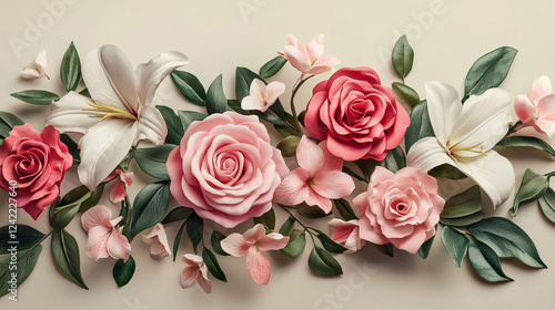 Elegant bouquet of fresh pink roses arranged in a soft-focus background, exuding romance and sophistication, ideal for floral-themed compositions
