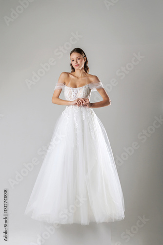 bridal, gown, wedding, dress, model, lace, elegant, white, display, studio, setting, minimalist, fashion, beauty, feminine, sewing, attire, tulle, romantic, stylish, apparel, clothing, design, garment, posing, event, outfit, lovely, shop, occasion, wear, dressing, luxurious, charme, sophisticated, industry, designer, female, portrait, runway, detail, aethereal, fashionable, celebration, artistry, collection, fabric, fitting