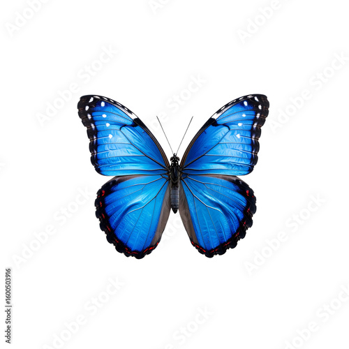 Elegant bright blue morpho butterfly close up detail on transparent background