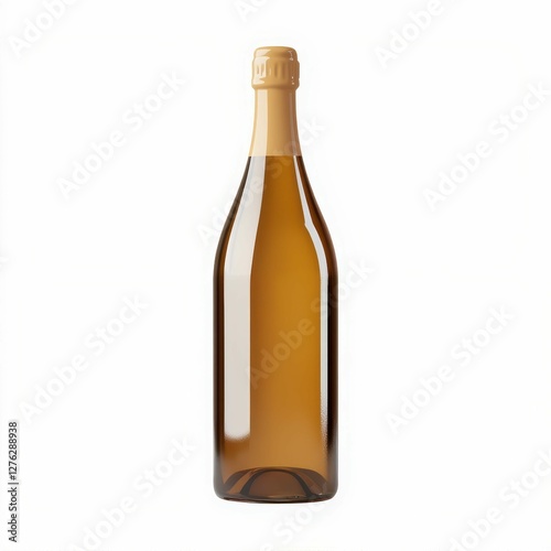 Elegant Brown Glass Bottle Object Isolated on White Background with Smooth Surface and Golden Cap