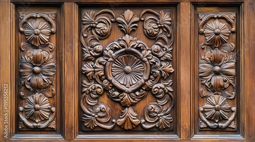 elegant brown wooden entry door, featuring intricate carvings and a polished finish, showcasing craftsmanship and welcoming ambiance for a home