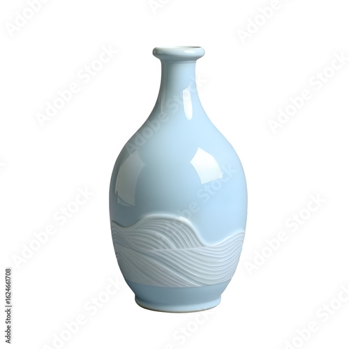 vase, ceramic, blue, wave, pottery, vessel, decorative, artistic, glossy, hand-made, sculpted, ornamental, home decor, tabletop, craft, porcelain, smooth, elegant, floral arrangement, water feature, gift, antique, collection, object, isolated, studio shot, aesthetic, contemporary, realistic