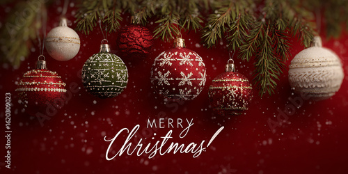 Elegant Christmas Balls Banner with Holiday Text Space for Greetings
