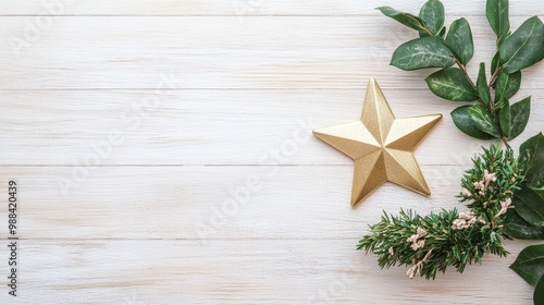 Elegant Christmas Decoration with Golden Star and Evergreen Branch