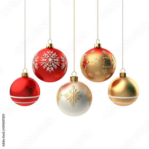 christmas, ornament, red, gold, white, bauble, hanging, decoration, festive, holiday, winter, celebration, joy, cheerful, elegant, design, snowflake, pattern, glossy, shiny, sphere, round, string, contrast, celebratory, merry, bright, sparkly, metallic, texture, craft, hand-made, artisan, traditional, classic, vintage, modern, style, aesthetic, beauty, art, seasonal, atmosphere, ambience, christmas