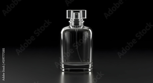 Elegant Clear Glass Perfume Bottle On Dark Background