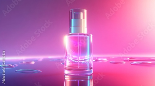 Elegant Clear Glass Perfume Bottle Under Pink and Blue Gradient Lighting