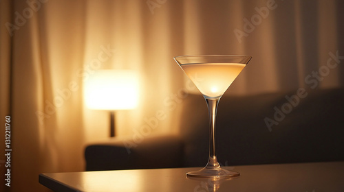 Elegant cocktail in a martini glass, bathed in warm, ambient light against a soft backdrop. Classic cocktail, relaxation, and subtle sophistication.