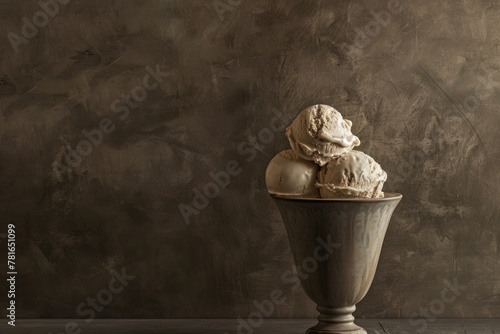Elegant composition of Mr. Graham's ice cream on a monochromatic background, leaving a clear space for text,