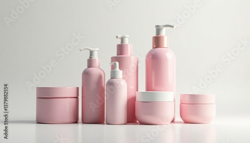 Elegant cosmetic bottles, tubes on white background, premium, luxury