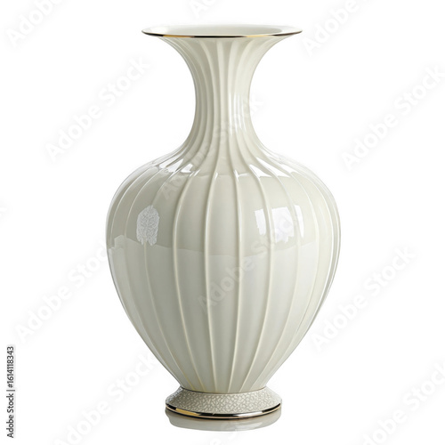 vase, ceramic, decorative, home, interior, design, ornament, flower, container, table, object, luxury, elegant, white, gold, rim, glossy, smooth, pattern, relief, studio, isolated, background, empty, classic, antique, modern, art, craft