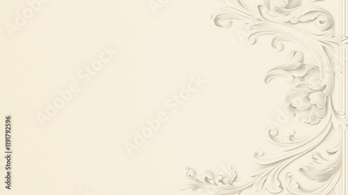 cream, background, floral, scrollwork, design, elegant, ornate, pattern, texture, vintage, antique, classic, baroque, rococo, arabesque, carving, relief, embossed, decorative, detail, art, style, motif, flourish, swirl, leaf, flower, border, frame, corner, element, illustration, graphic, image, wallpaper, template, invitation, card