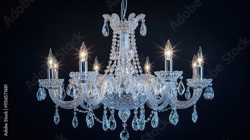 Elegant Crystal Chandelier Illuminated Against Dark Background with Space for Text or Branding