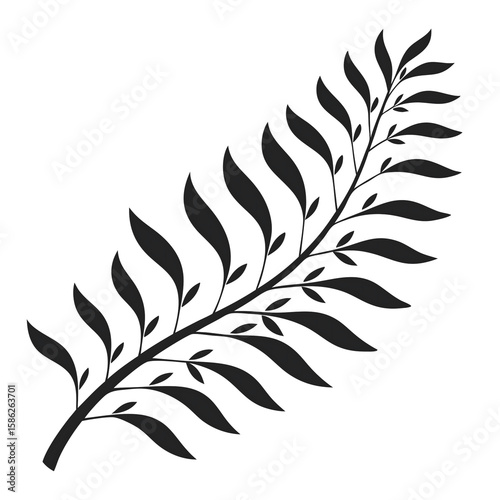 Elegant Dark Gray Branch Silhouette: Simple, Minimalist Botanical Design Element.