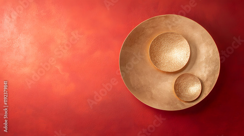 Elegant decorative bowls displayed on warm red wall interior design artistic arrangement modern aesthetic close-up view