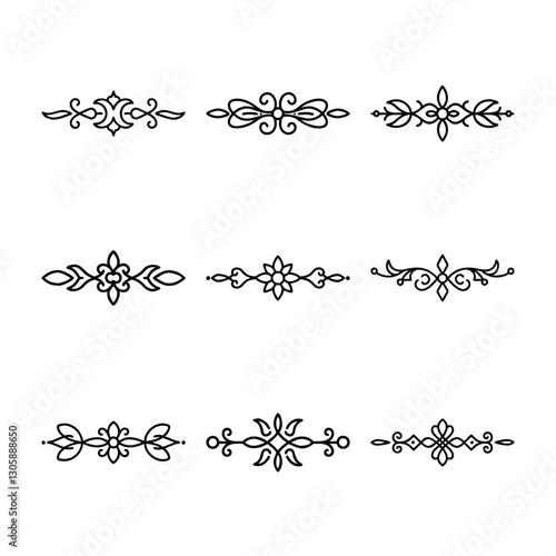 divider, decorative, line art, floral, scrollwork, pattern, design element, graphic, vector, illustration, minimalist, elegant, vintage, timeless, branding, stationery, invitation, wedding, poster, booklet, book cover, template, black-and-white, simple, sophisticated, ornament, embellishment
