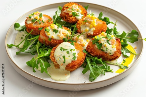 isolated, white, background, plate, food photography, arugula, deliciously, epicurean, mouth-watering, golden brown, tasty, velveting, fanciful, haute cuisine, sophisticated, watercress, appetising, seafood