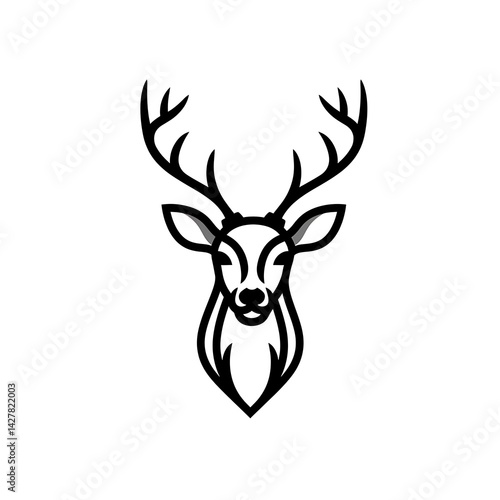 Elegant Deer Head Outline with Antlers Minimalist Black and White Logo