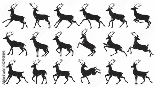 Elegant Deer Silhouette Collection, Stylish Wildlife Icons for Art and Design Inspiration