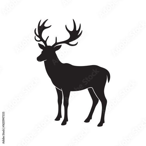 cervid, stag, buck, antler, wildlife, animal, nature, forest, timberland, majestic, graceful, silhouette, vector, graphic, illustration, clip art, design, element, icon, symbol, outdoors, countryside, hunting, park, reserve, mammal, herbivore, male, regal, creature