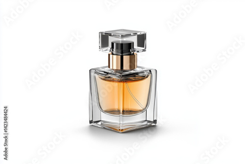 Elegant designer perfume bottle with clear glass body displayed in luxurious setting captured in a professional studio environment focus on aesthetic design concepts