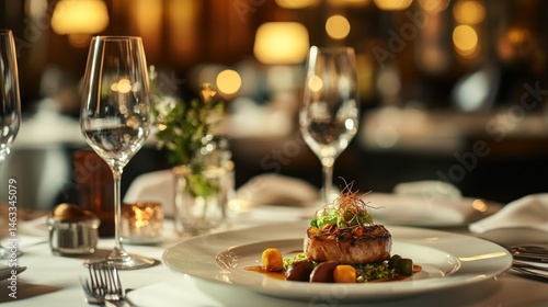 dining, epicure, eatery, food, elegant, meal, table, decor, luxury, cookery, atmosphere, hospitality, service, fine, life events, plate, chef, presentation, taste, favor, drink, celebration, gathering, social, ambience, evening, fork, knife, glasses, light, bokeh, upscale, dish, fresh, herb, vegetable, meat, dessert, setting, event, occasion, stylish, enjoyment, savour, culinary, indulgence
