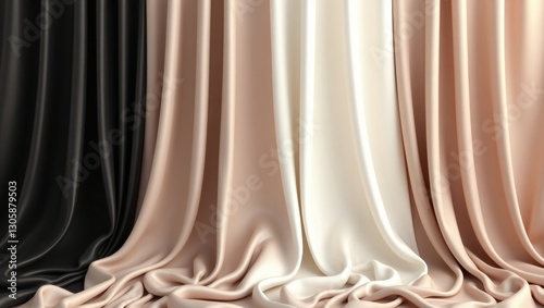 drapery, textile, satin, silk, clothes, smooth, fold, luxury, elegant, texture, black, cream, beige, background, design, material, softness, curve, abstract, gentle, flowing, wave, delicate, sheen, neutral, pastel, surface, beauty, shadow, light, artistic, soft, fabric, shiny, drape, seamless, pattern, gradient, art