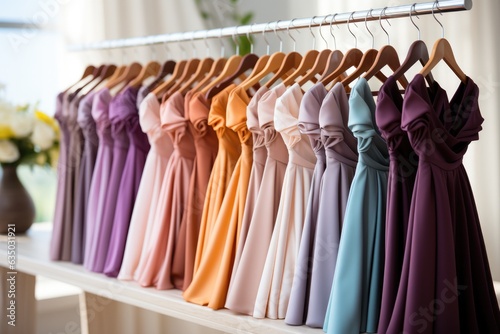 Elegant dresses hanging on a garment rack - stock photography concepts