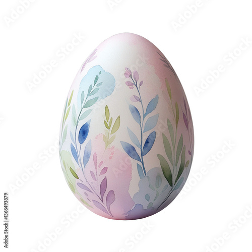 Elegant Easter egg with a watercolor botanical pattern. Delicate pastel shades create a soft and airy look, perfect for spring decor, greeting cards, festive designs, and packaging