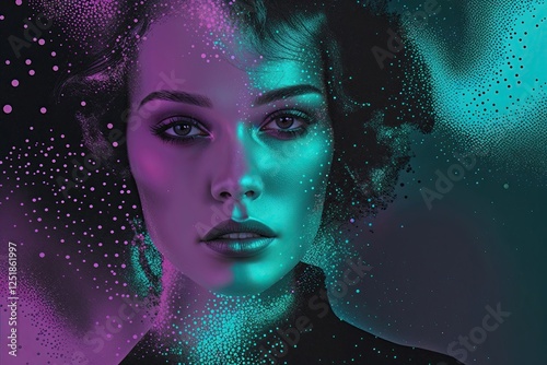 Elegant Eggplant Teal Black Abstract Design with Dotted Pattern Shimmering Color Shift and Texture Overlay